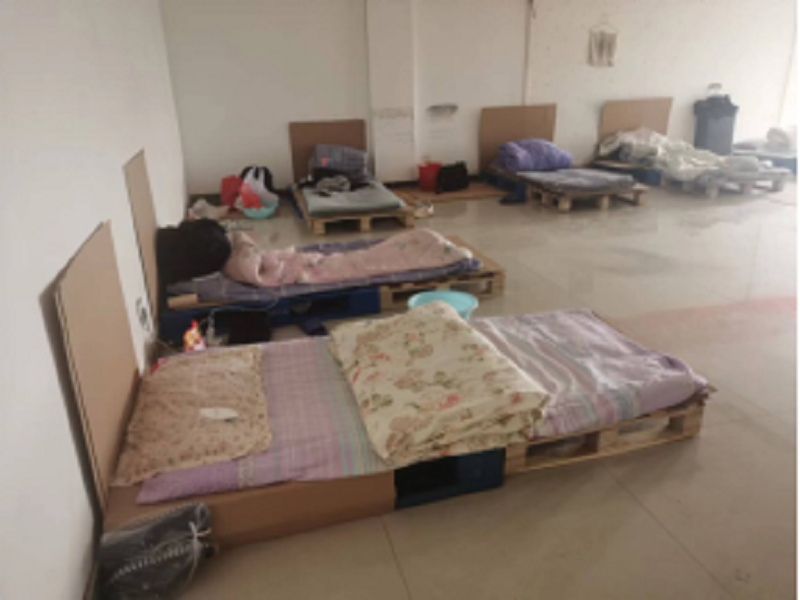 為滿足員工基本生活需求,公司將培訓(xùn)室、辦公室、會(huì)議室臨時(shí)改成員工休息室、開放公司淋浴房、搭建晾衣繩(桿)。