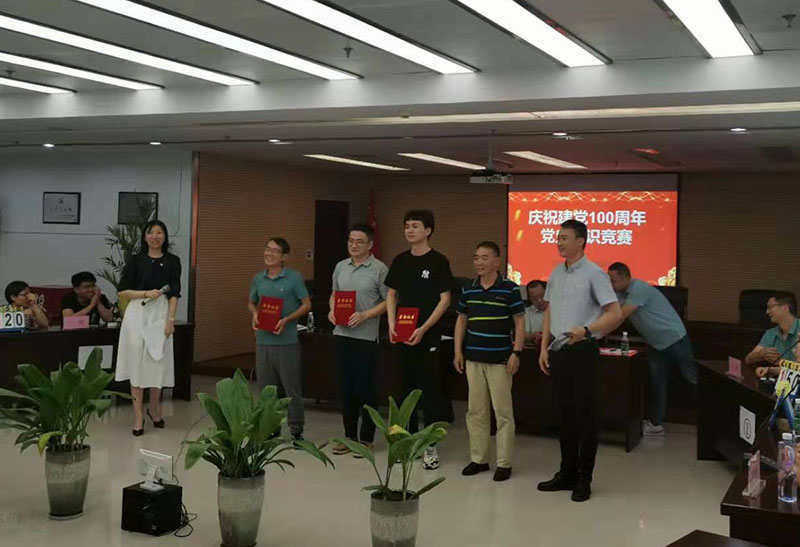 整個比賽秩序井然,精彩紛呈,活動會場氣氛莊重而熱烈。本次競賽分為必答題環(huán)節(jié)和搶答題環(huán)節(jié)。必答題環(huán)節(jié)每位選手輪流作答,同隊選手不可提示。搶答題環(huán)節(jié)將整場比賽的氣氛推向高潮,會場的選手們爭相回答各種問題,也不時有小隊為搶不到題目作答而嘆息。經(jīng)過兩輪激烈角逐,最終評出一等獎一個,二等獎兩個,三等獎五個,市建投公司黨支部紅船隊陳遠(yuǎn)龍、吳濤、周康健三位同志在8支隊伍中脫穎而出獲得知識競賽第一名。